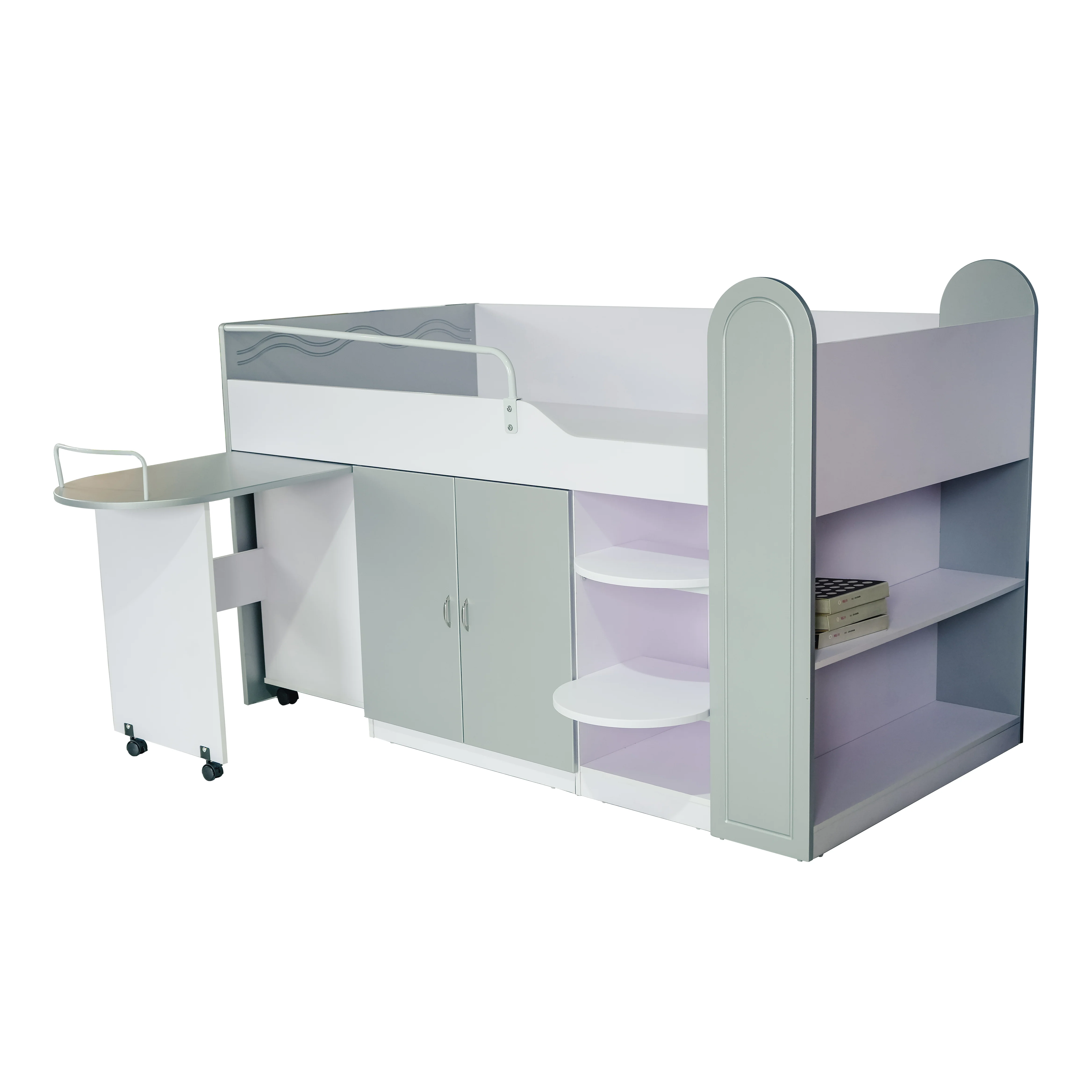 Teenage Grey Mid Height Bunk Bed with Built-In Desk